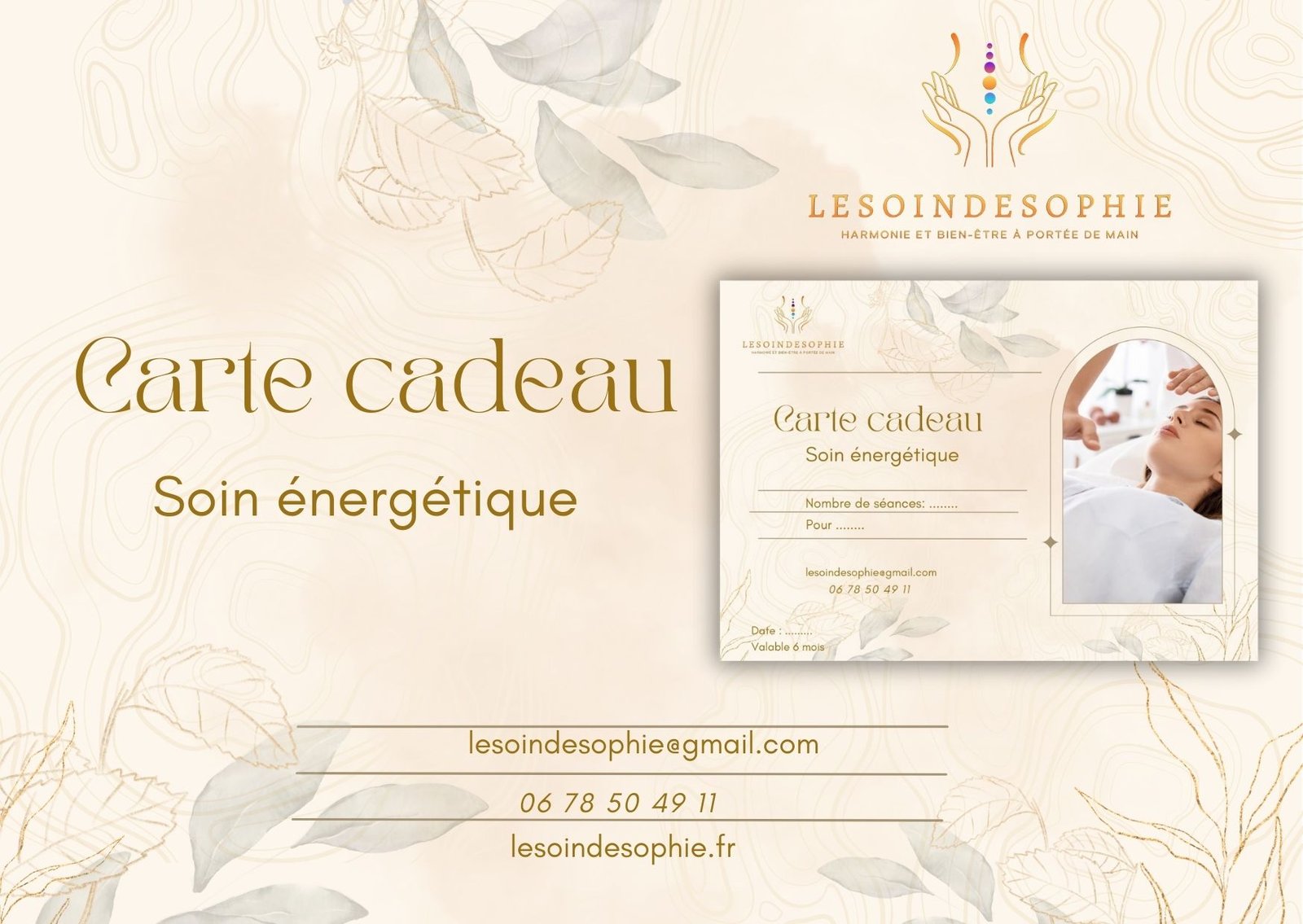 La carte cadeau comprend un soin énergétique complet, adapté à chaque personne et un rééquilibrage des chakras.